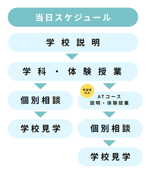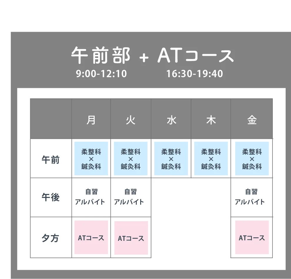 柔整科・鍼灸科の合格発表後にATコースの申込をしていただきます。